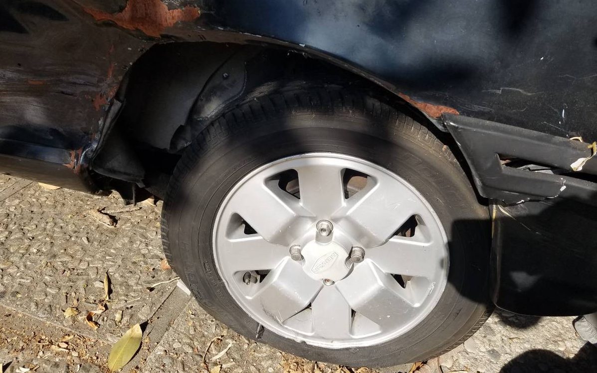 Looks like that rear driver side got hit by an oncoming car or object. Good reflexes by the driver to avoid a head-on collision!