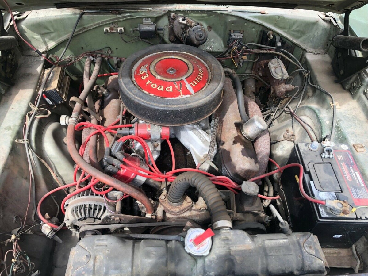 Finding a classic project car is great, but it is even better when it is a running and driving car that is numbers-matching. That is exactly what this Road Runner is. The original 383ci V8 and automatic transmission are both still present. The car hasn’t had a lot of use in recent times, but the owner has just fired it up and taken it for a drive, and it drives well, with no problems to speak of. There is a bit of cleaning to be done, courtesy of a leaking valve cover gasket, but once again, it really does look promising. One job that should go on the priority list is the tires. Apparently, they’re getting pretty old and cracked, and the owner does suggest that they should be changed before the car is driven any distance. Speaking of tires, the original spare is still sitting in the trunk.