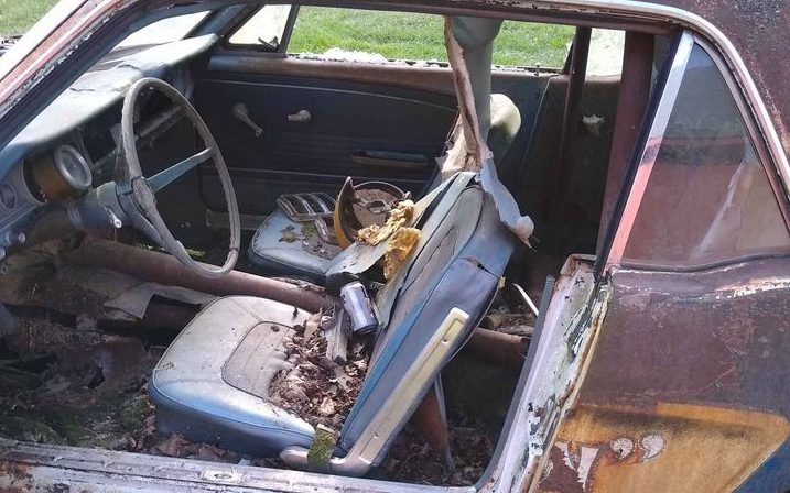 The seller claims that he doesn’t have time to part out this Mustang, adding, “I could make more parting it out but I just don’t have time to mess with it“. So…what might be partable here? Well, there’s a little but not a lot. There are fiberglass components like the hood and trunk lid (with a broken corner) and supposedly good fenders. The rear frame-rail, or suspension attaching point, is rotted away, however. Sounds like there is a window regulator or two that may be salvageable. The seller’s intention was to get this Mustang back to driver status but reconsidered for budgetary and time reasons.