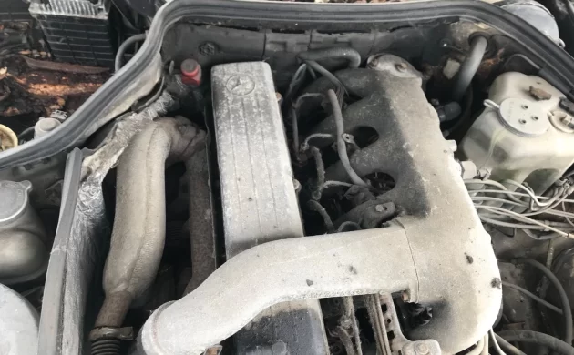 While the interior is filthy and in need of deep cleaning (or just replace it entirely with a junked 300E’s interior that’s been looked after), it’s the bodywork you have to be concerned with. Every car is restorable and plenty of 300Es are still out there in southern and western climates that will give up their doors and rockers for a car like this. The wagon’s tailgate and hood can also be replaced with clean parts, but the rear quarter panels on both sides will require the help of a bodywork expert. If you have access to a cache of parts, it could make sense to initiate a restoration attempt, but it may be smarter to simply pull the engine and scrap the rest.