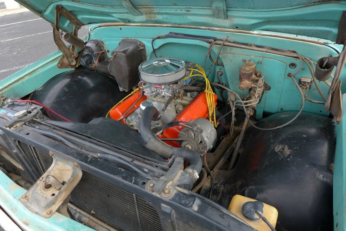 My opinion of this truck? Paint is too far gone. This is due for a proper respray. Call this what you want but this is rusty and that means that the metal is oxidizing. If you’re determined to keep it this way then use the WD40. Just don’t let your better half lean up against it in her pretty white blouse. I like the 327 and it warms over just fine. For a number of SBC rebuilds I like to run flat top pistons and a 300 HP 327 (.447/.447) camshaft. It isn’t too lumpy and it gives reasonably good performance. You can run regular gas and not have to deal with a lot of detonation.