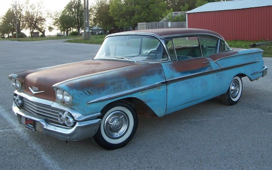 UPDATE 7/2/21. This car has been relisted here on eBay, so we’re guessing the first sale didn’t go through. The last bid the car received was for $7,600 on 5/17/21. It’s a 1958 Bel Air coupe, seen less often than the snapper Impala that debuted that same year.