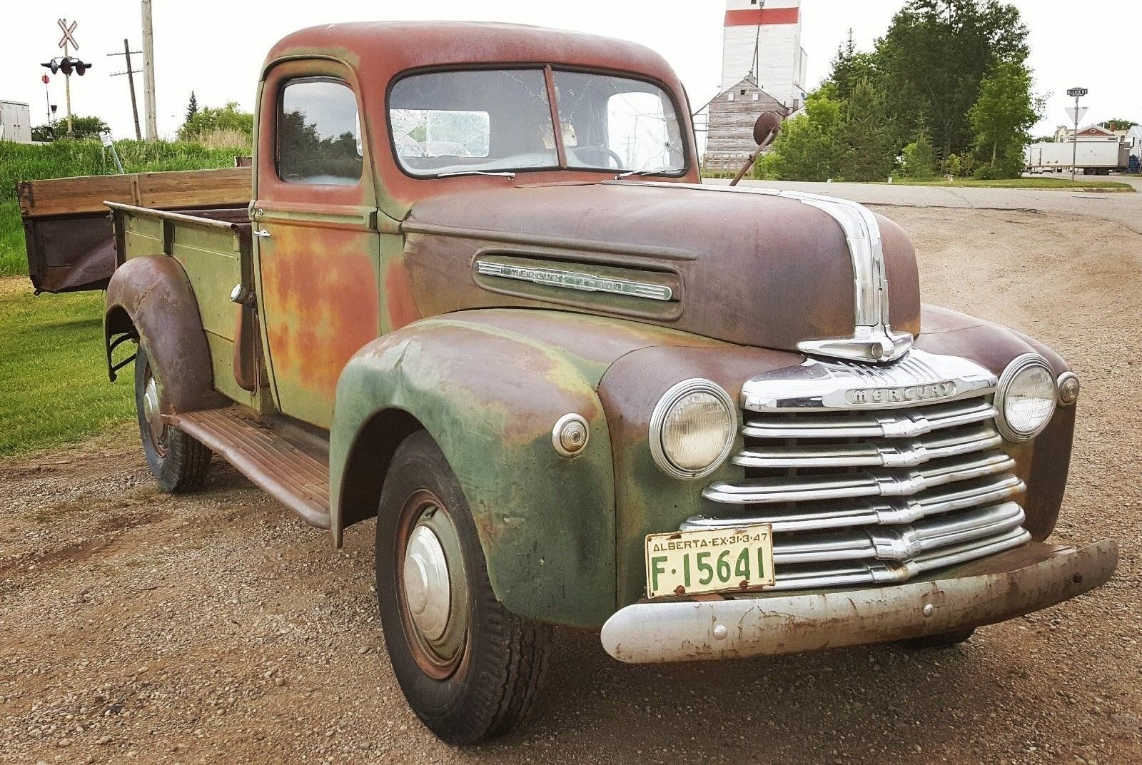 I think it’s great what these guys do. I’d love to do that, scour Canada for trucks, as clearly, all the US ones have been found. Kind of the last frontier for trucks. This HAS to be in geomech’s back yard. I like the Mercury trucks, as it seemed, they were the “GMC” of GM trucks, a bit fancier than the standard Chevy. I’m sure it’s wet inside, because they blew the crap out with a pressure washer, a great find, at a plausible price, as long as the vultures don’t get it 1st. Clever they hang a plate from the year of the truck, but I doubt it was used for one year, and that tailgate door looks added, so you know, with side boards, this hauled some big loads. Looks to have a locking steering column. Was that a Mercury plus? Little unusual for 1947.