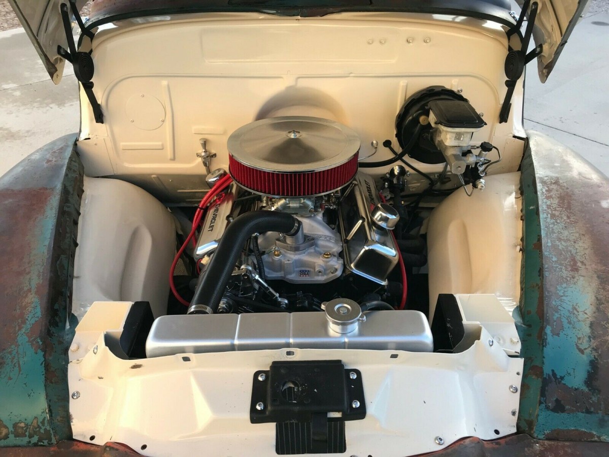 The C-10 is a desert survivor, and a life in that sort of environment has allowed it to develop the look that you see today. It appears that it is free of any actual rust issues, and the panels are remarkably straight. The vehicle has been fitted with new smoked glass all round, and this looks to be free of any scratches or chips. The custom bed wood is new but has a great vintage look to it, and hiding below that is an aluminum fuel cell. All of the exterior trim and chrome is new, and this contrasts nicely with the aged look of the rest of the Pickup. The combination of 18″ and 20″ Ridler wheels are probably a good indication that this is not your average 1951 C-10.