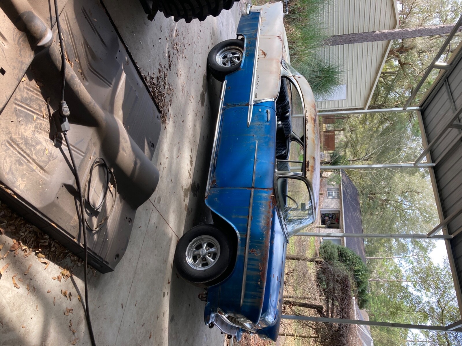 Neat car.Little too much “patina” for me.Pictures suck.Take it out in the sun light,take more pics like underbody,floors , trunk,frame,vin tag etc …sheesh.You want to sell it don’t ya?