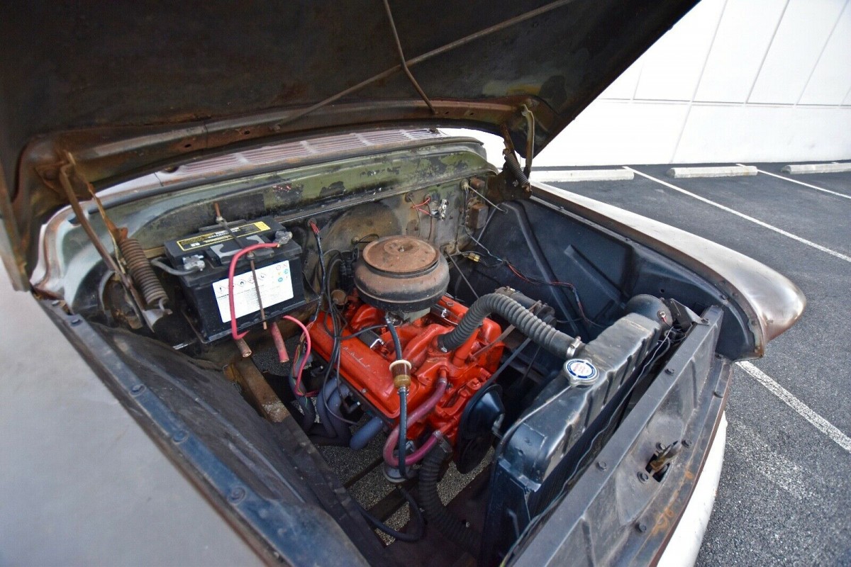 The interior is pretty nice and matches the brown exterior. The doors are said to shut firmly with no rattles and the drip rails are still in nice shape. The seller believes the original color of this truck was a forest green which appears to be creeping through the brown overspray. This is some rust underneath but the body is said to be solid. A prior owner installed a fuel pump, master cylinder, and new battery. The truck still retains most of its original wood bed which looks pretty cool.