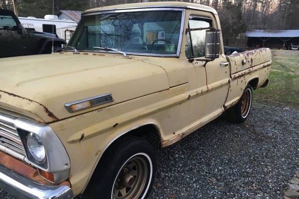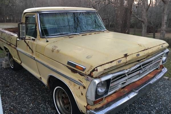 Talk about a bizarre trip down memory lane. In 1987 I had a 68 F100, Ranger trim level. Same or incredibly similar factory yellow. Short bed. 390 FE series. C6 auto. P/S, P/B, factory A/C. Mind you it was only 19 years old at that time and well kept. Even though it was a year different this makes me think that this is how my truck could have ended up looking through the course of the years with a different owner. As far as I know it ended up in Mexico. Sure brings back memories.