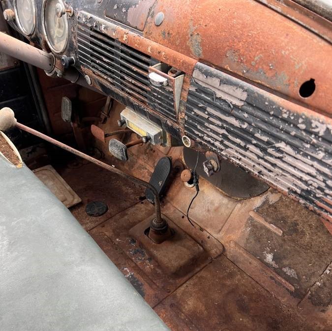 Not much information is provided about this truck. Apparently, it spent at least some of its life on the Left Coast as the seller focuses on finding “solid Western projects with good titles”. The once light green paint has now reached the patina stage and it’s hard to determine if any serious rust is at work anywhere on the truck. The odometer reading is just 800 miles, so we assume it has gone around at least once.