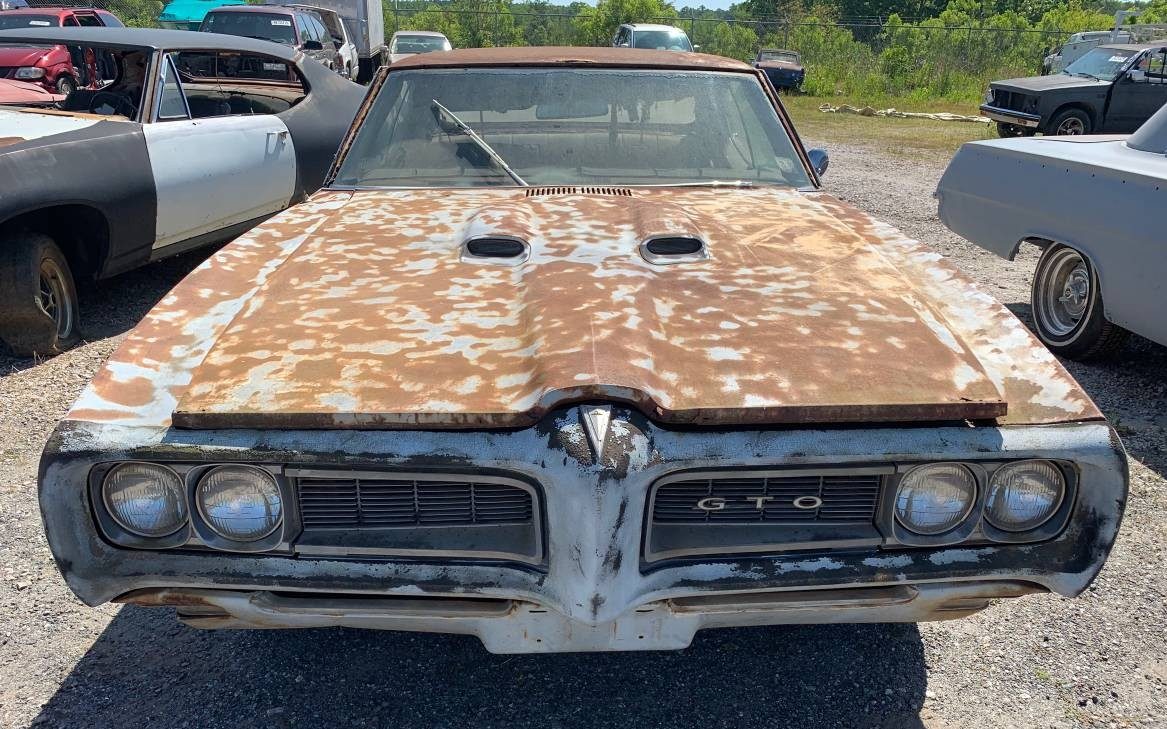 One of the cool things about the 1968 GTO is that it was one of the first cars to have a front Endura bumper that was painted the same color as the car. Several other manufacturers would copy this design. A buyer in 1968 could order their GTO with an “Endura delete” option. If this was ordered, the Endura bumper was replaced by a chrome front bumper that was the same as was available on the LeMans. As is evident, rust is a concern and this car is covered in surface rust on every panel.