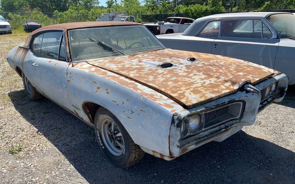 Ikey Heyman has brought us another gem that needs some love but could also be considered untouched! This 1968 Pontiac GTO is located in Clover, South Carolina near Charlotte. The GTO is listed here on craigslist for $4,000 but maybe the seller would take less. The engine is said to have been last started two years ago. The car is said to be a true one owner car and is sitting on a lot with some other interesting vehicles in the background.