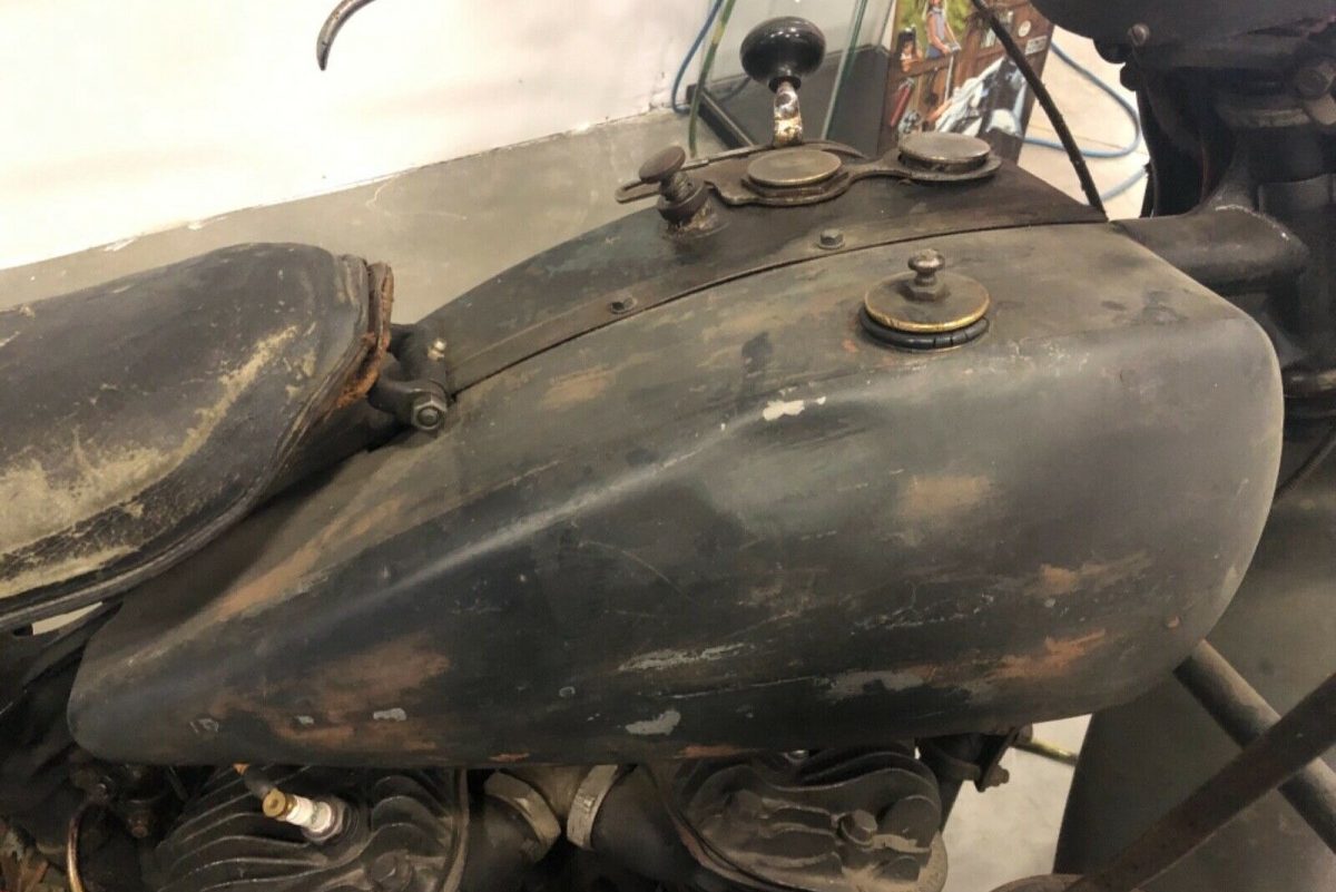 In those notes, the seller mentions that the heads are of a slightly later date than the bike, late 1935, which considering the age and condition of the bike, is not that surprising. Given that, I suspect there are more parts on this bike that have been replaced in the past. The seller states the motorcycles has new wiring, gaskets, brake parts, the list goes on. One hilarious thing to note about this bike is, it does not have a speedometer. Instead, you have a single ammeter.