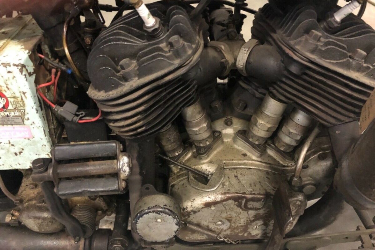 There are two sides of the debate on “patina” and whatever your opinion, this bike has it in spades. This motorcycle has been ridden hard and put away wet, and wears its faded, mismatched paint well. This motorcycle sports the 74 cubic inch (1200 cc) Big Twin that Harley developed in 1929 and is ready to ride, according to the seller. It has been mechanically and electrically sorted and the seller includes in the pictures a dated list of maintenance they have completed, an excellent additional piece of documentation any prospective buyer will appreciate.