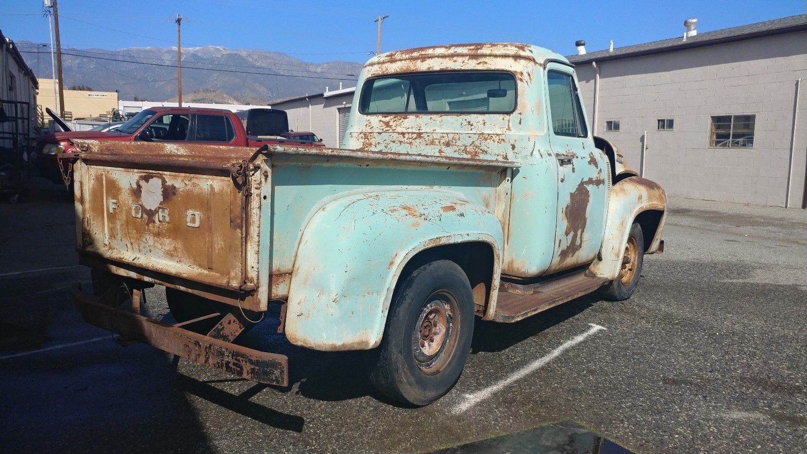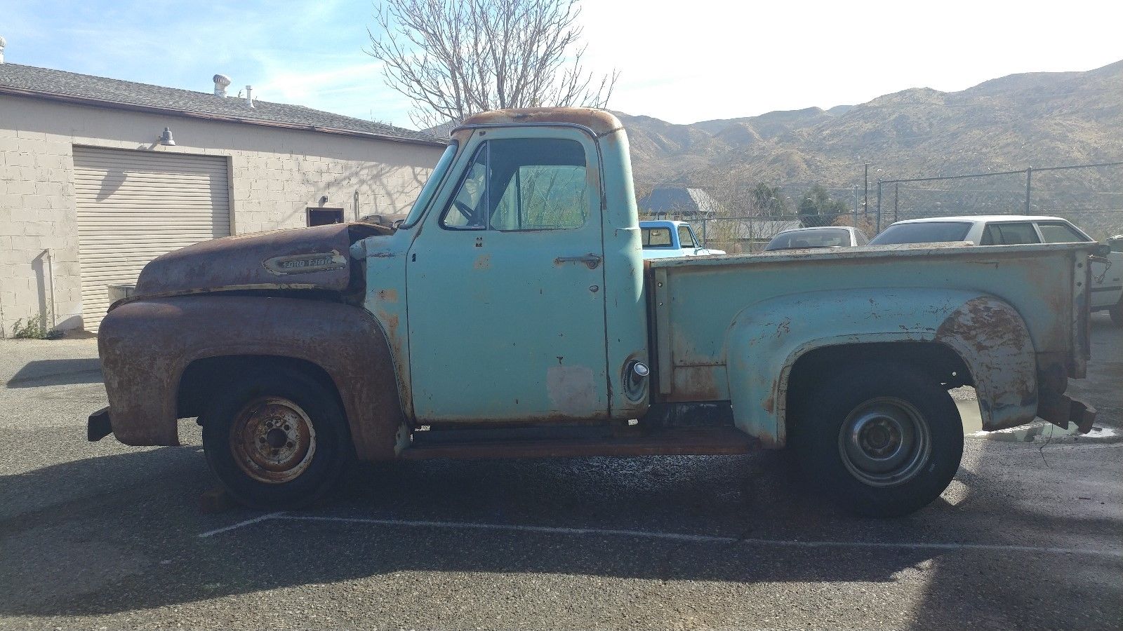 53-56 F100s, the king of classic pickups. The V8 emblem on the grille says the original engine was a 239 Y-block. The one in there now is an early FE, 332/352/or 390. Looks like surface rust only, would be a relatively easy restoration, and the price is responsible. I’ve seen much worse with a higher price tag.