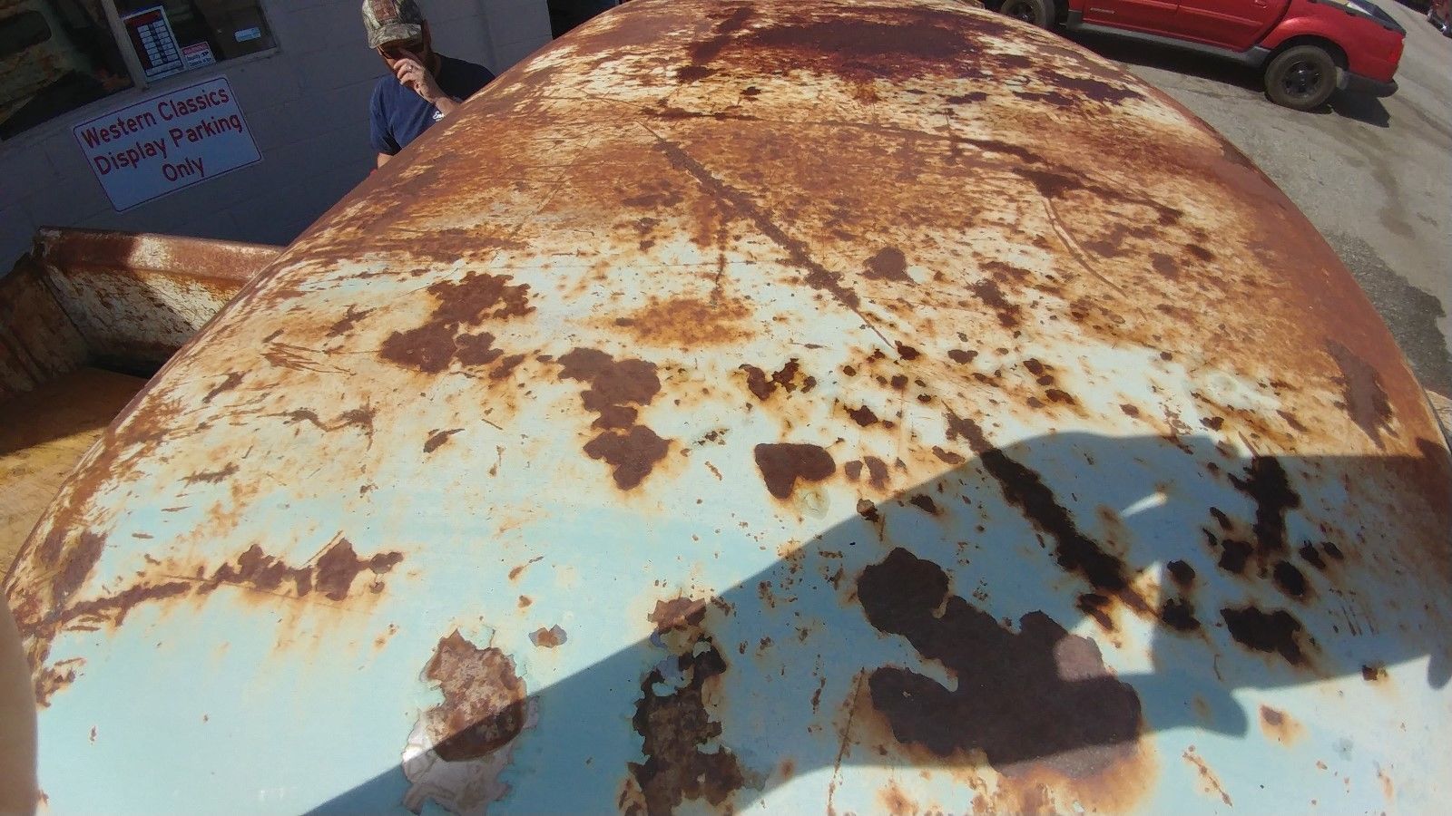 This close up picture of the roof gives you a better idea of the depth of the rust (not too bad). I’m still not sure if the lighter color is the primer showing through or not.