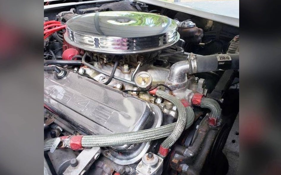 The bling continues in the engine compartment with plenty of chrome and polish. The original LS5 (454) car lost its original big-block, but another 454 cid (7.4L) V8 stands in its place.