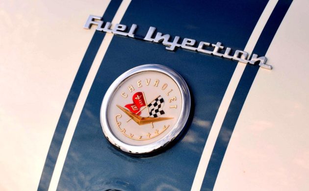 Inside, the blue interior is described as being fully coordinated, extending beyond the seats to the dash, console, and trim elements. Fuel injection, special styling details, and race-inspired influences all point to a car built to impress and to signal Chevrolet’s performance future rather than serve as ordinary transportation.