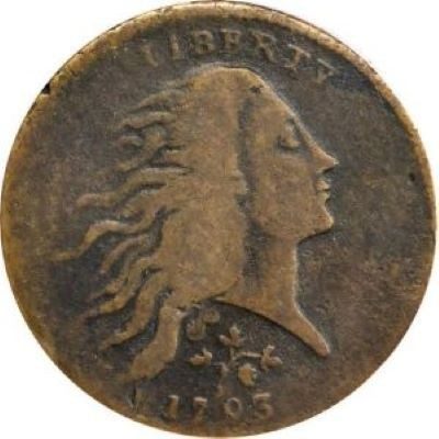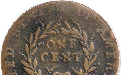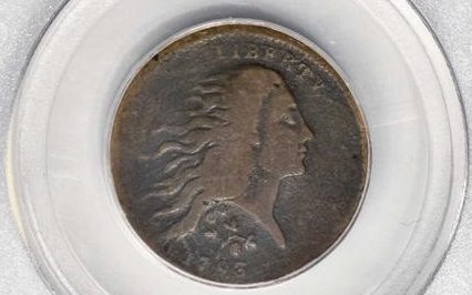 The Coinage Act of 1792 brought about the minting of coins at the Philadelphia, Pennsylvania mint in 1793. All early coins were stamped from copper and along with this Strawberry-Leaf cent, which is also known as a “Liberty Cap” or a “Flowing Hair Portrait”, half-cent coins were minted as well. This particular coin is known as a “Large Cent”, measuring about 27 MM in diameter as opposed to a modern cent which is closer to 19 MM in diameter. Numismatics grade coins as PO-poor; FR-Fair; AG-Almost Good, G-good; VG-Very Good, F-Fine; VF-Very Fine; EF-Extremely Fine; AU-Almost Uncirculated; Unc-Uncirculated and BU-Brilliant Uncirculated. Our subject, which is listed as an NC-3 (non-collectible, type 3 version) is considered in a VG category. The three other existing NC-3 coins are graded VG, G and AG. There is a slightly different variation in existence, referred to as an NC-2 version, it is only considered FR however. The sale history for this particular coin is as follows: