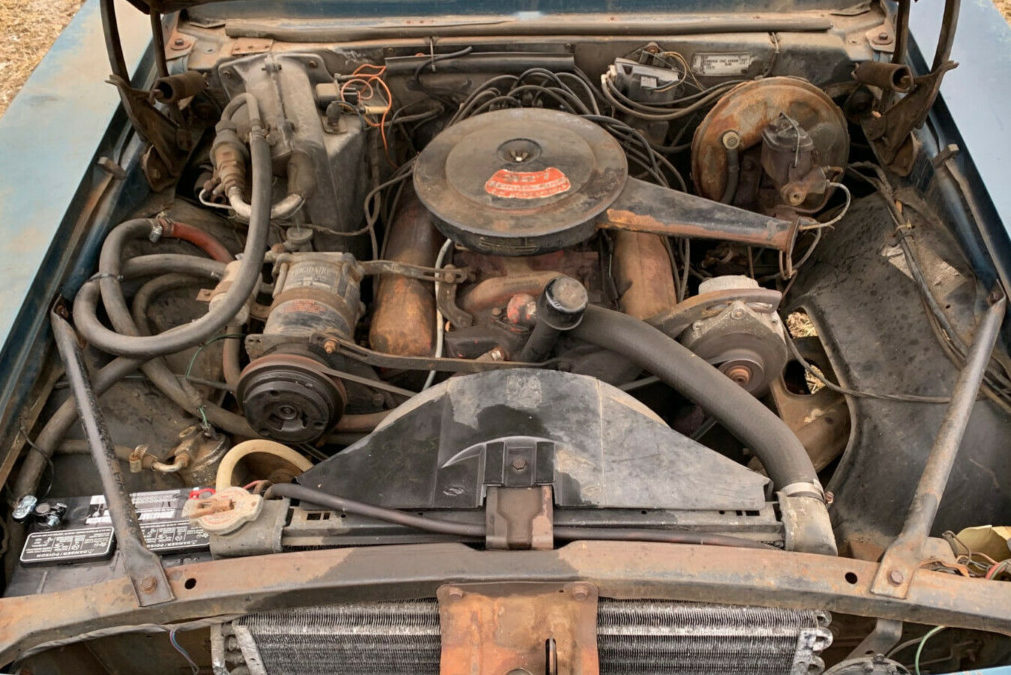 The exterior of the Camaro seems to be finished in a 50:50 mix of the original Tahoe Turquoise, coupled with wide expanses of surface corrosion. However, actual penetrating rust is quite minimal. It looks like there are some relatively small spots in the bottoms of both front fenders, along with some in the lower sections of both rear quarter panels. It’s hard to get a really good look at the rockers, but they seem to be okay. What is okay is the trunk pan. It has a good coating of surface corrosion, but it and the drop-offs look really good. The same would appear to be true of the floors, and while areas such as the cowl will require careful inspection, with the seller stating that the dash is solid, what can be seen to this point is pretty encouraging. The factory tinted glass appears to be free of any significant damage, and while all of the external trim and chrome is present, some of it will require either restoration or replacement.