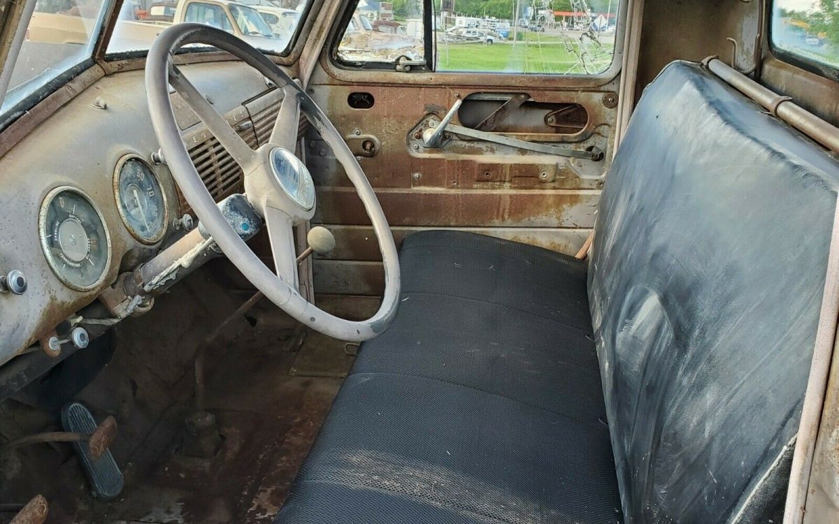 I agree, I think it’s a ’52. Wiki claims, ’52 started the push button door handle and 90 mph speedo. ’53 was the last year for the 3100-6400 designation on the hood and had maroon dash knobs, that I don’t see.. It claims 3100 was the 1/2 ton, 3600, 3/4 ton, and so on. Plus that air cleaner is from the 70’s. Man, a LOT of work here. The only way to do this truck, since it’s so rough to begin with, is a total, and these days, that’s a tough call. I just don’t think the interest is there today and a slew of resto-mods out there. If you’re going to do it, start with a nice one. There are plenty of nice original ones still out there.