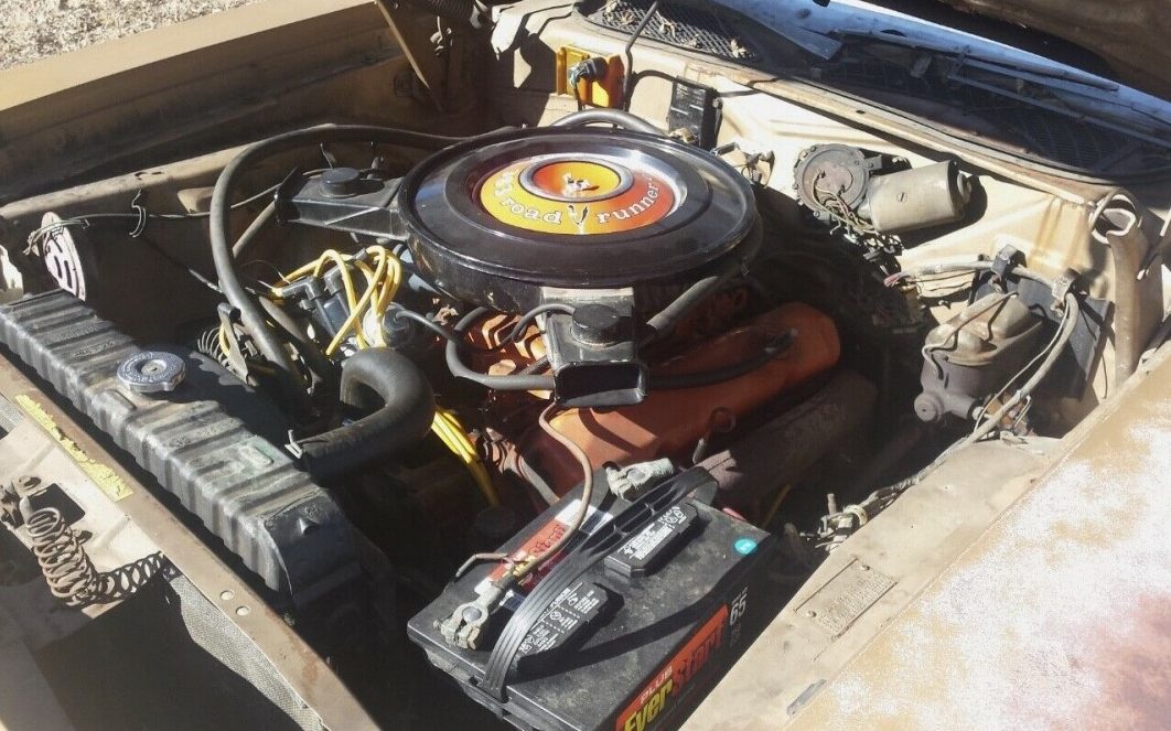In looking at body & platform integrity, the seller claims it to be rot free other than a small perforation in the truck floor and some bubbling under the vinyl roof covering, beyond that all original and untouched. This is an Oklahoma car and Oklahoma has a variety of weather, some of it advantageous to older cars and some not. This Mopar, like others of its generation, is subject to rust in floors, body panels, and reinforced platform members, probably more so than some other brands but this one looks solid and as the seller reminds us, it’s original. This Road Runner only has 68,000 miles on the clock so obviously it has spent a lot of time sitting in what I would imagine have been preferable conditions. The sun, however, somewhere over this car’s 48-year life span has worked the finish, hard.