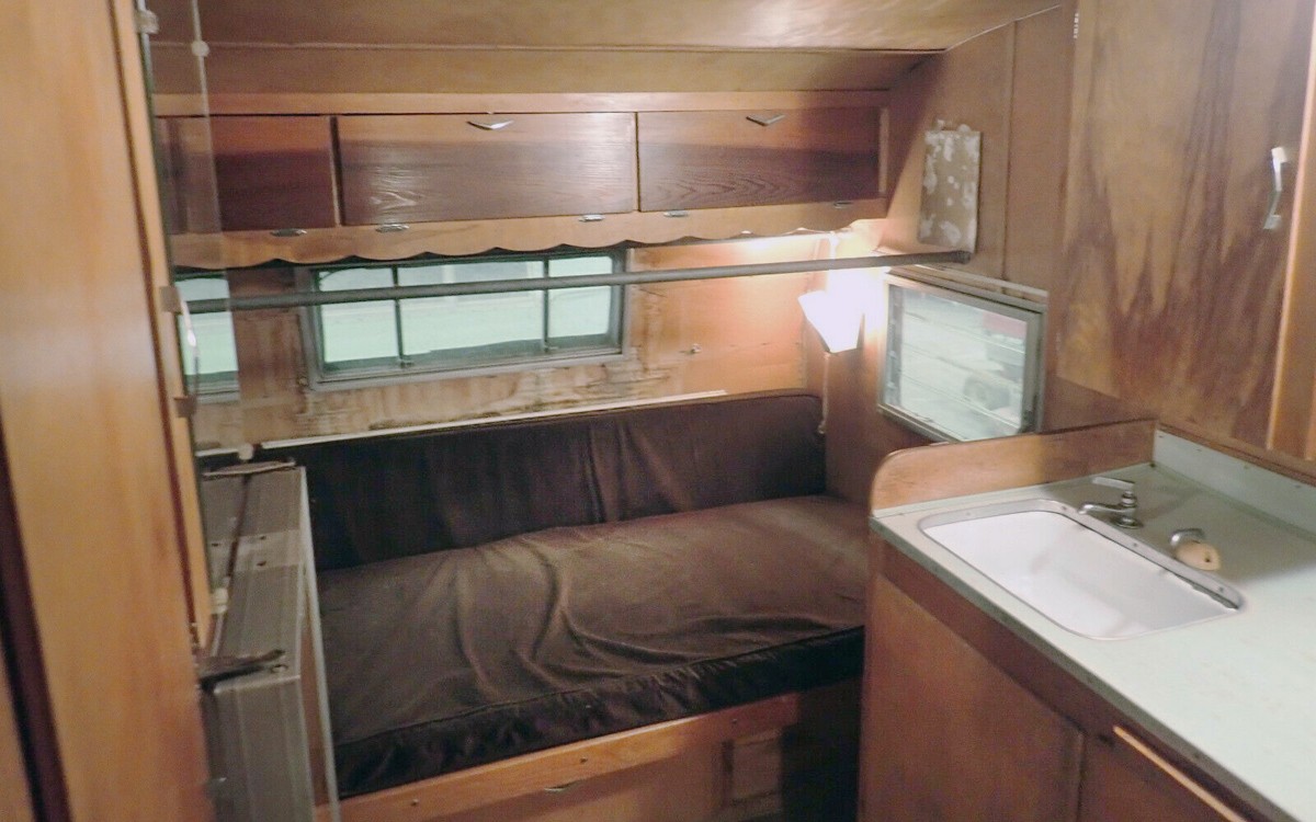 Speaking of the exterior, there is one slight hitch there, the right rear corner has sustained some damage in the past so that’ll take some work to sort out. It’ll be a fair amount of work to restore this trailer but these vintage trailers are hot so if a person could do most of the work themself, it may even pay off monetarily other than just having a fun project to use when you’re done with it. Are there any vintage trailer fans or owners out there? Let’s hear those stories.