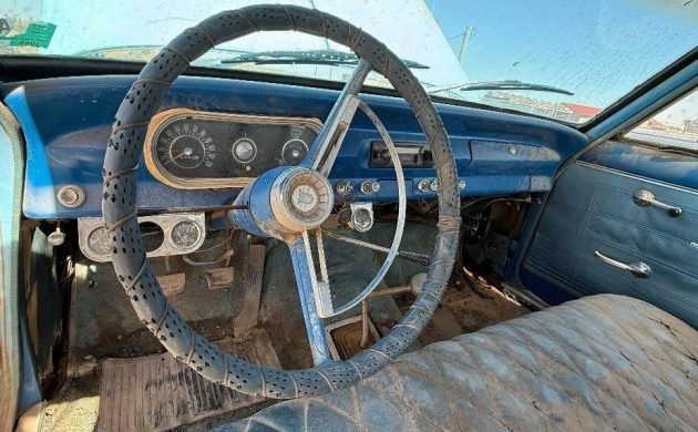 This is the only interior photo provided, but from this viewpoint, it looks like everything that should be there is present, except for the passenger’s kick panel. An aftermarket Stereo and some under-dash gauges have been installed, and adding a pair of buckets might be more fun than recovering the bench seat up front. This 1963 Chevy II has several possibilities, and fortunately, they all seem to be good. Which direction would you go in with this one?