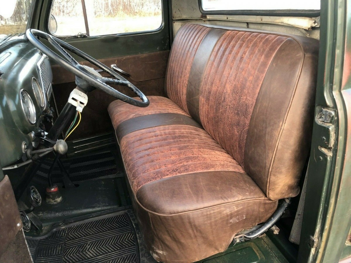 Now for the real jewel, the interior! They could have slapped a cheap vinyl seat cover on the original bench, but instead, they decided to go with a Moore & Giles Leather throughout the truck. Even door panels were covered in this beautiful leather. While it’s new, it still has the great vintage look and makes this truck seem far more high end then it ever would have been new! Everything is said to work inside, but then again it’s a pretty simple vehicle.