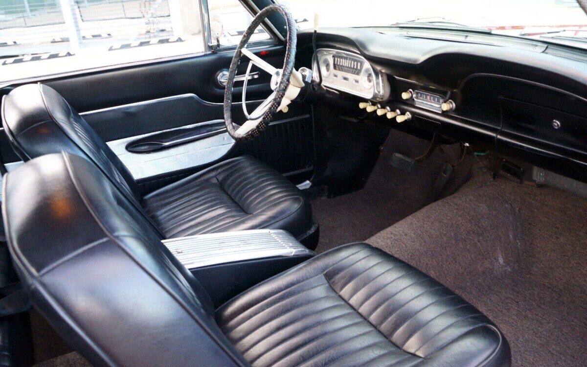 The most notable feature of a ’61 Falcon Futura is the bucket seats and center console interior. The upholstery, in this case, has to be a redo, the black vinyl material is nothing short of perfect! And that perfection extends to what can be seen of the door panels, dash pad, and instrument panel. The interior of this car needs absolutely nothing!