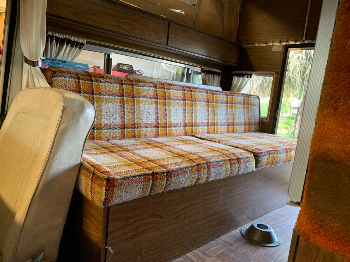 The seller doesn’t go into much detail despite how cool this Bronco is, and it seems like the kind of truck that would come with loads of stories. From what I can tell, this is the section of the camper that materializes once the pop-top is opened up. The fabric lining the upper cabin seems to be in good shape, and even the cushion seems to be holding up fairly well. The upholstery pattern reeks of 1980s decor, and the fake wood trim completes the look. There’s no telling what the atmosphere is like inside the tent area, but that’s just one of the surprises you’ll have to live with if you buy this cool Bronco camper sight-unseen.