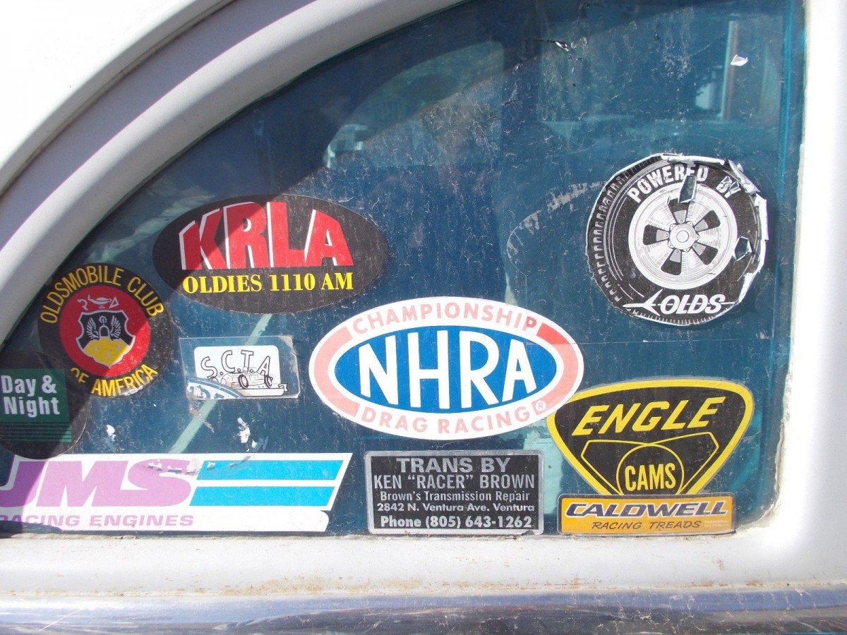 The seller has included this picture of the decals still on the window of the Olds. I sure hope the buyer keeps these pieces of history intact! The seller knows something about the history of the car as well: the car…“belonged to well-known Southern California drag racer Norm Voorhis out of Monrovia, California. Raced at Lions in the 1960’s running a 394. Raced in the 1980’s and 1990’s at Terminal Island (11.78) and at Carlsbad (11.80) running a 455 with a 4 barrel. In 2002 at Carlsbad the engine blew up and was totally destroyed.”