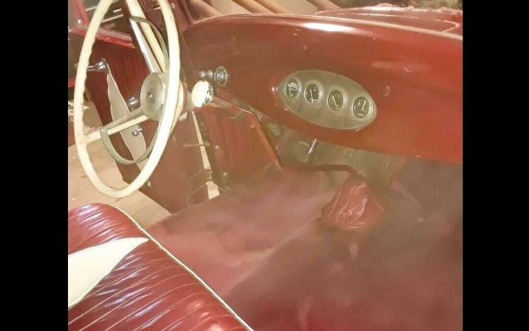 Everything inside dates to the old days, including a ’56 Ford Thunderbird steering wheel, diamond tucked upholstery, and Stewart-Warner gauges. Museum quality time capsule or not, it will be a shame if this Ford sits somewhere else without burning the tires once in a while. It makes me want to start building one tomorrow. Would you dare to alter this long-parked coupe?
