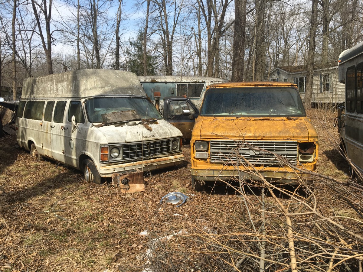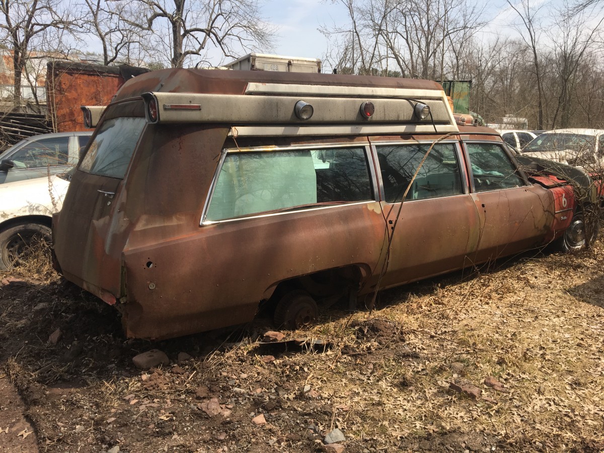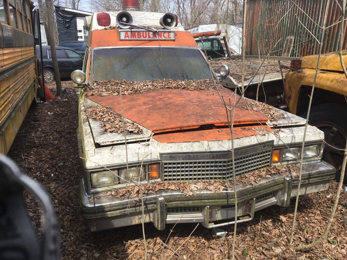 I love old junkyards , but In all honesty most of this should have been crushed out when steel prices were high a few years ago . Old buses , junky box trucks , rotted out mid 70s Caddy ambulances and stripped out beat up cruisers with no drivetrains aren’t worth a heck of a lot and never will . The earlier Ambulances and hearses here are only good for their trim and lights ; most ambulances and hearses are well maintained, so people who collect them usually have good cars to start with and have no need for a rotted carcass . The early 50s four door sedans that sit here are the same way; I cant see anyone pouring money into restoring one of these , just trim parts and they aren’t particularly rare . It also seems like every old time yard saves Packards and Studebakers , but its a limited market, and unless they are rare (like the Packard ambulance and 66 Lark ) , they will just rust away like these have. The only ones that caught my eye was the Checker cab and the 74 Dodge Royal Monaco -that is a complete looking former cruiser and is the same model as the Blues Brothers car -he wont have problems selling that !
