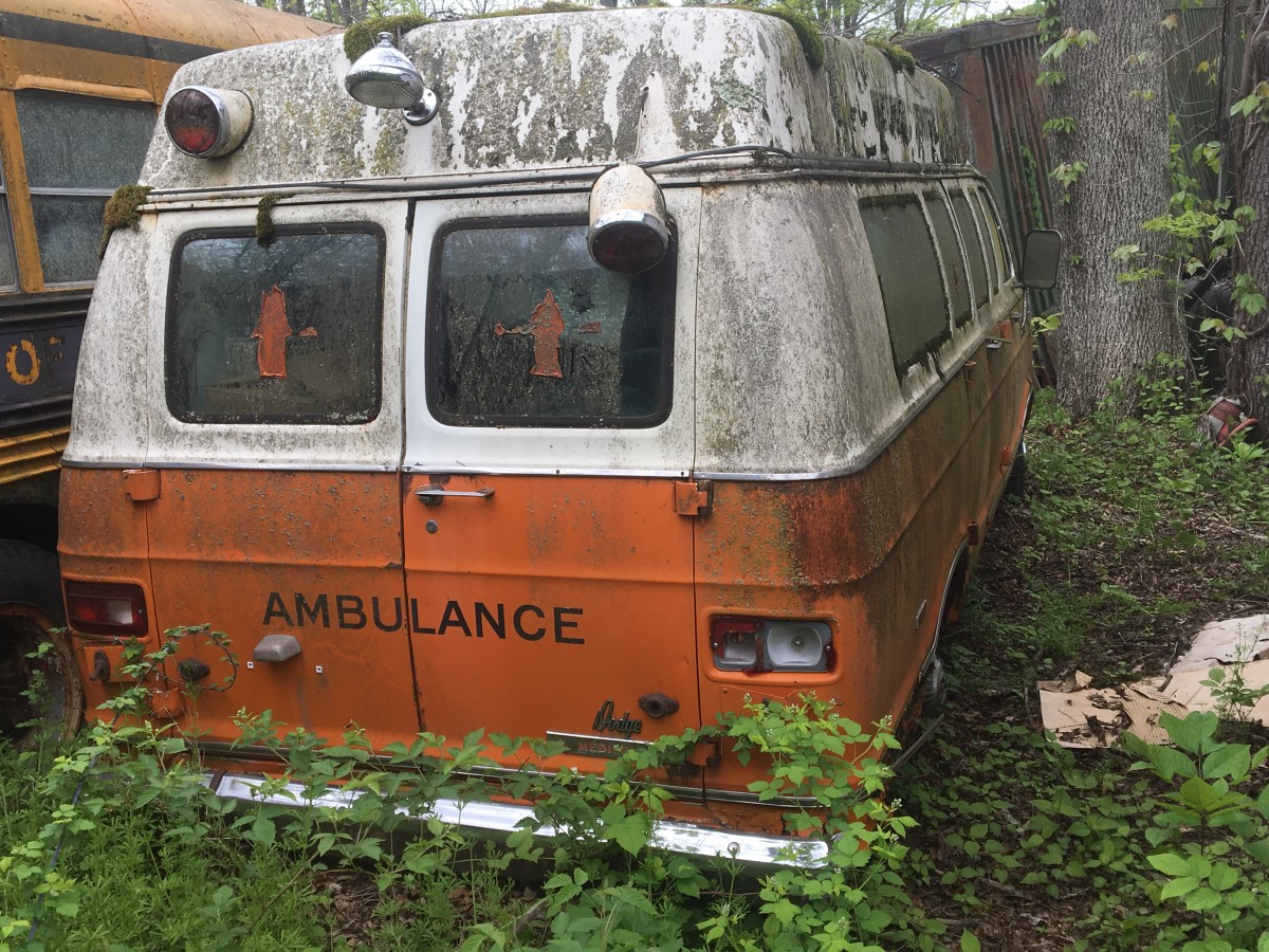I found the mid 1970s Dodge Ambulance the most interesting. My father had a 1975 Dodge Tradesman All Window Long Van with the same color scheme. Beige over Orange. I remember he bought it from a curtain store around 1977. It had curtains mounted in all the back windows. We called it the Creamsicle. Of course there were no lights on the roof or any ambulance badging. It had the 318 engine in it. I remember using it around December 1987 to move from a house I sold to another house. So we had it a long time. The rocker panels started to rust, he could not get it through the NJ inspection so he pop riveted some sheet metal over the holes and then it passed. He finally sold it in 1988 somewhere around Freehold, NJ. That was the only van I ever saw with that color scheme until now.