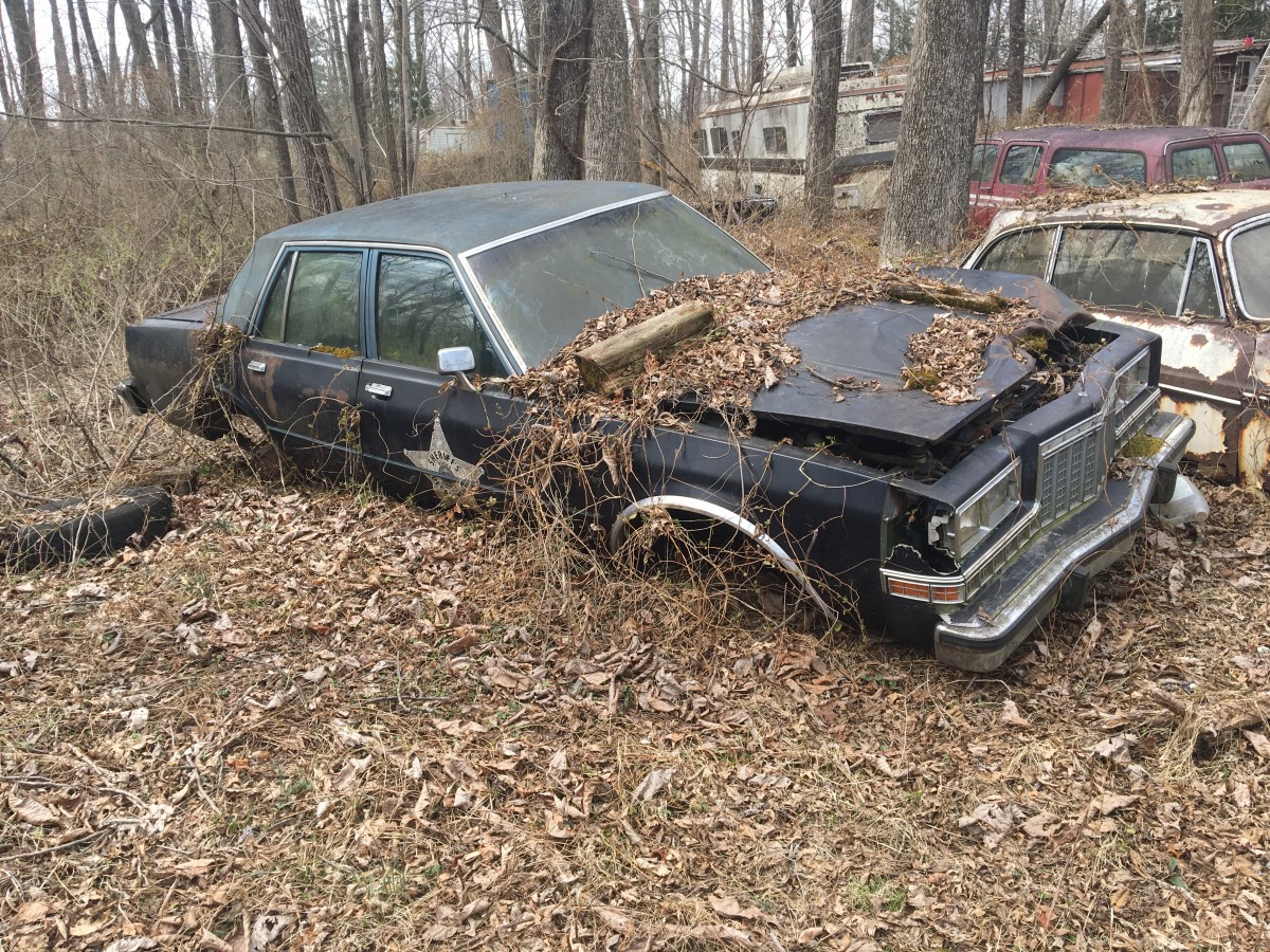while some may be interesting, let’s face it, they are beat … you could probably find any of them at an estate sale, in much better shape I dare say, those that have been ” setting” there for years upon years would require a complete make over.. and what would you have? a mid 80s Dodge cop car which I have heard of late, is not worth the effort I did look twice at that 80 New Yorker but sadly, up to its door handles in leaves … he can let them go now ” dirt cheap” or after he passes scrappers will show up and haul them away