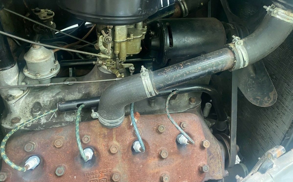 Tried and true resides under the hood in the form of an 85 HP, 221 CI “flathead” V8 engine, now in its fifth year of powering an entire variety of Ford vehicles. The seller opines that “This car runs out beautiful. Just back from a 100-mile ride“. The motor shows well, including what looks like recent carburetor work. A three-speed manual transmission, the only choice, backs up the flathead.