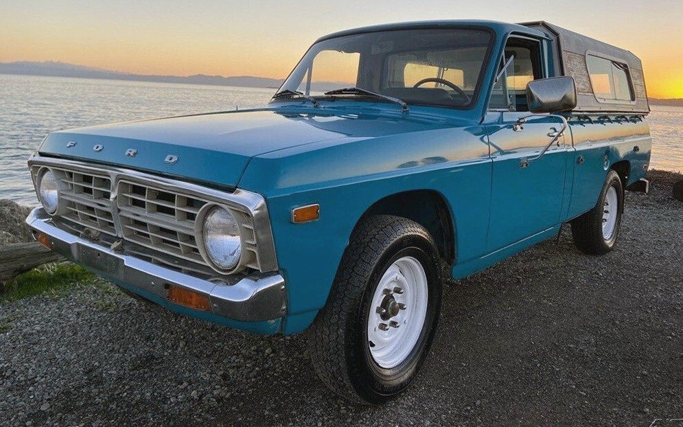 This auction is truly a contender for the Barn Finds 2021 Photos of the Year award which I just made up but we should have something like that. The first-generation Ford Courier was made from 1972 to 1976 and most folks know that they’re basically a rebadged Mazda B-series pickup. I don’t know if I’ve seen one in this Phoenix blue color before, most of them seem to be a goldish yellow or a pea-green color it seems like. The underside looks rock solid.
