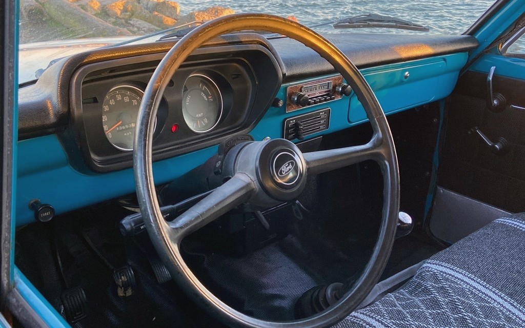 The interior looks great even with a seat cover over a few seam separations on the original seat. The beautiful crack-free dash top is rare to see as is the nice condition of the whole interior. There are a couple of cracks in the steering wheel and the pedals need new rubber, but for being 45 years old and not made to be a lifetime vehicle, this thing is nice. There can’t be many 45-year old Ford Couriers left, especially in nice original condition.