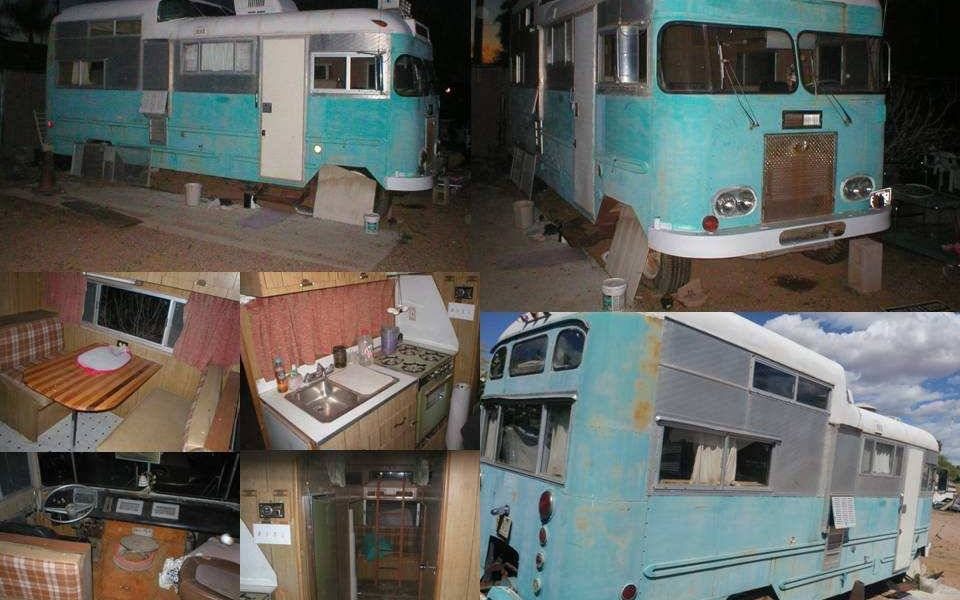 Remember, folks, always check your listing to make sure your middle-school child has not PhotoShopped lights onto the roof and fat wheels and tires into the wheel wells! Should you have to say that? Whether this is a real listing or not, the digital artistic additions make it news-worthy, so let’s take a look. Fans of the classic Oldsmobile Vista Cruiser or the Greyhound Scenicruiser will appreciate the elevated rear bunkhouse where (if it weren’t for the roof-mounted air conditioners) passengers can scan the road ahead in complete comfort. Advertised as a 1951 GM Motorhome, this box on wheels (though not the wheels shown here) comes to market here on craigslist where, for the sum of $6900, it can be yours to sort out fact from fiction. Perhaps readers near Meza, Arizona can take a look and report back. Thanks to reader Paul G. for spotting this digitally-enhanced gem.