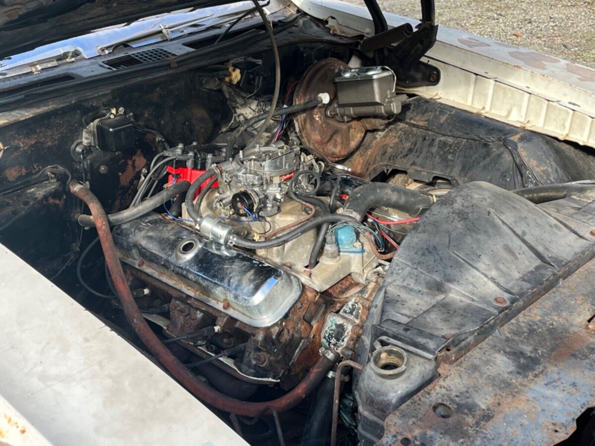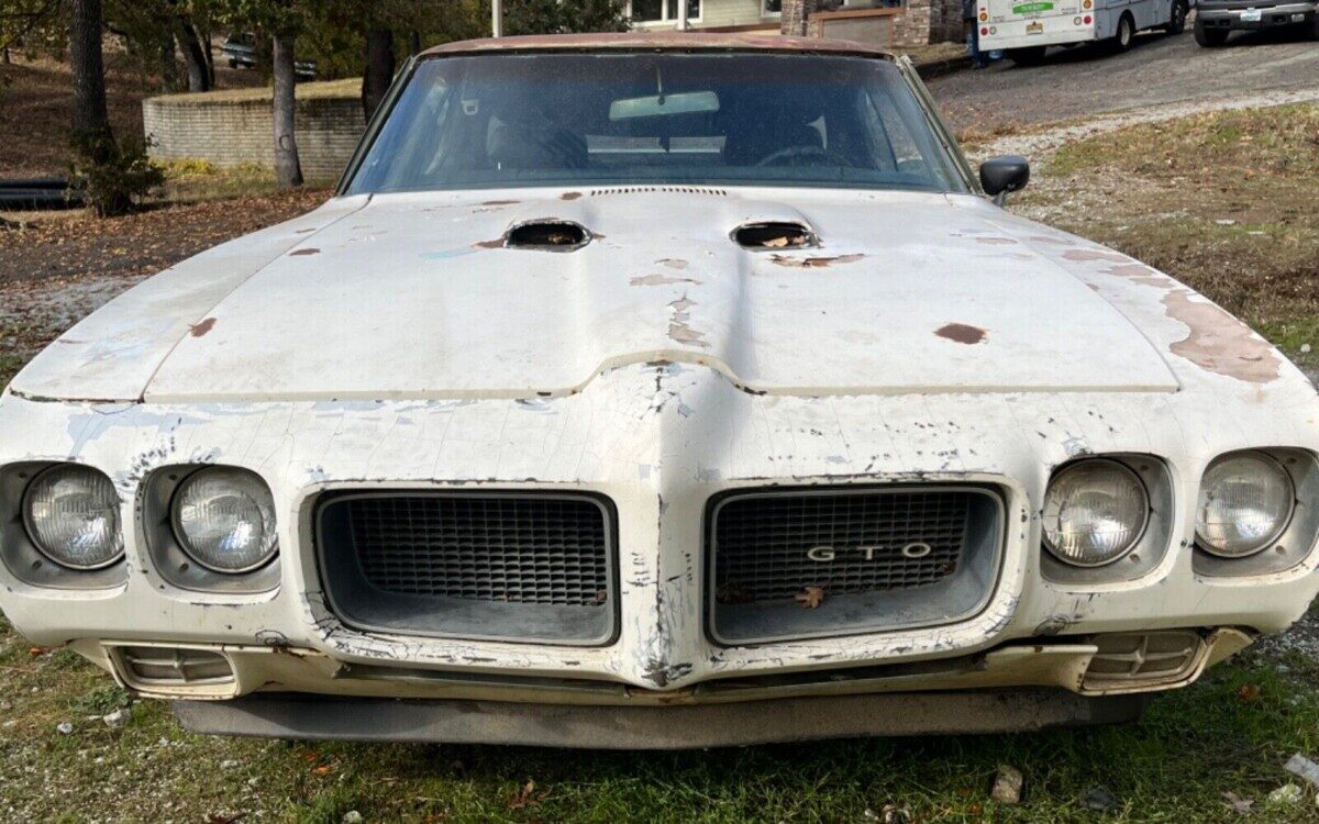 The GTO looks like it has set outside for quite some time. The body does have rust around the wheel wells that will need to be replaced or patched. The floor pan also has rust but the rest of the car is said to be solid. Most of the plastic pieces will need to be replaced during the restoration. The seller has over 175 pictures and videos of the car if you want to contact him.