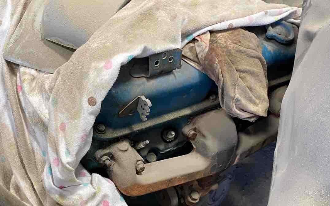 The engine is listed as a 5.2 liter V8 and the VIN bears this out, it’s a 318 CI unit that develops 230 gross HP. The engine is included in the sale but there’s no word on its operational capability. The sequence number does match so it is the original powerplant. Accompanying the engine, but not attached to it is a TorqueFlite three-speed automatic transmission.