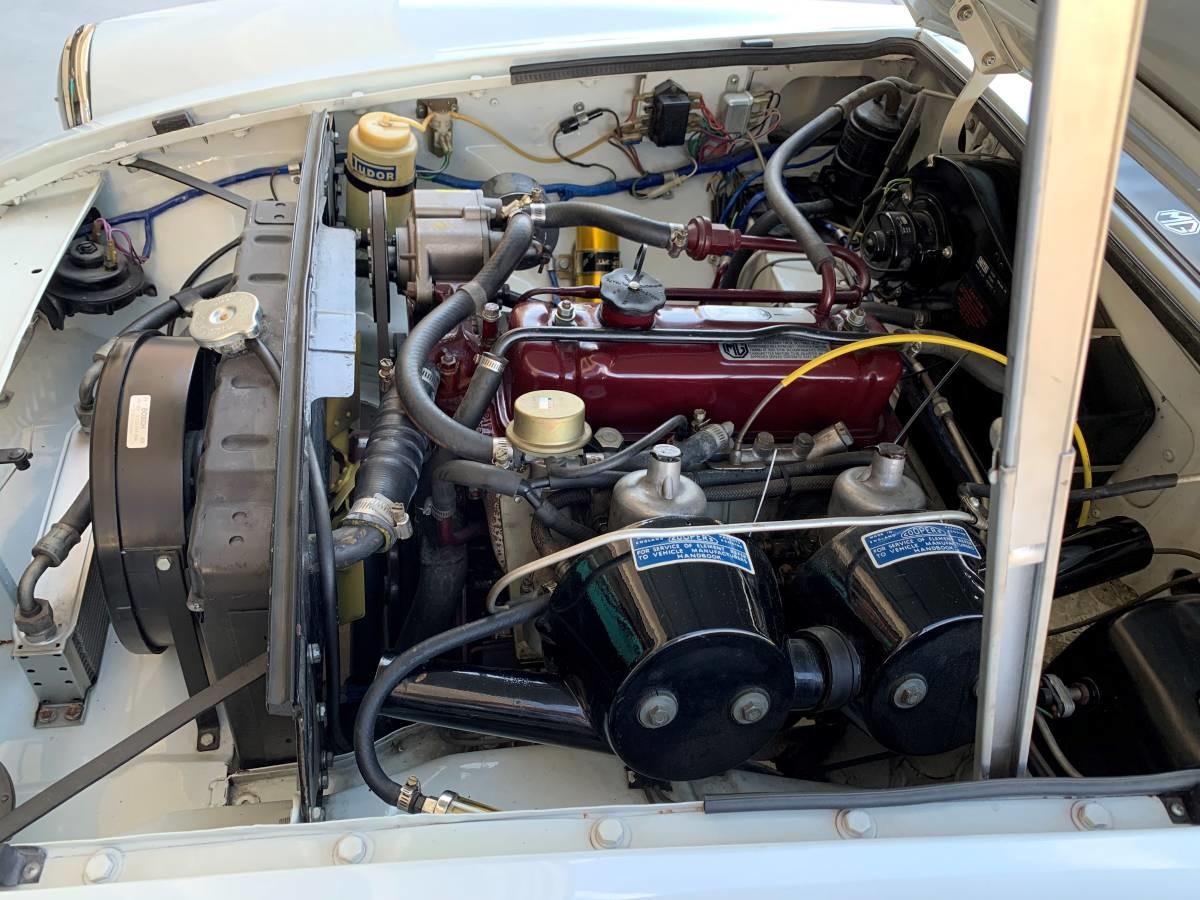 The interior of the MG presents exceptionally well, and I don’t foresee any work for the new owner inside the car any time soon. The predominantly Blue vinyl interior trim with White highlights provides a mirror image to the White exterior with Blue graphics. The upholstery and carpet appear to be faultless, while the Black 1974-model dash looks to also be in great condition. Of course, I’m not going to criticize any non-original items inside the vehicle, because these would be insignificant when compared to the rest of the custom work. Therefore, an aftermarket radio/CD player would make life pretty pleasant out on the open road.