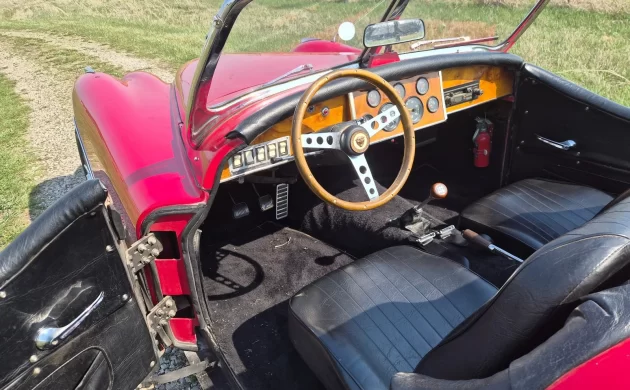 The company was based in Buffalo, New York, and generally has a good reputation for building a quality product. The replica Jaguar uses a fiberglass body that is four inches wider than the original, and while most references point to a Mustang II as the chassis donor, this listing refers to it as a “…reinforced 1978 Pinto chassis.” The other detail that stands out is the V6 engine, as most of these utilized domestic V8 power. The interior was crafted to a decent standard and thorough vintage in nature, with a classic wood-rimmed steering wheel and wood dash veneer. The seats and carpet look fairly generic.