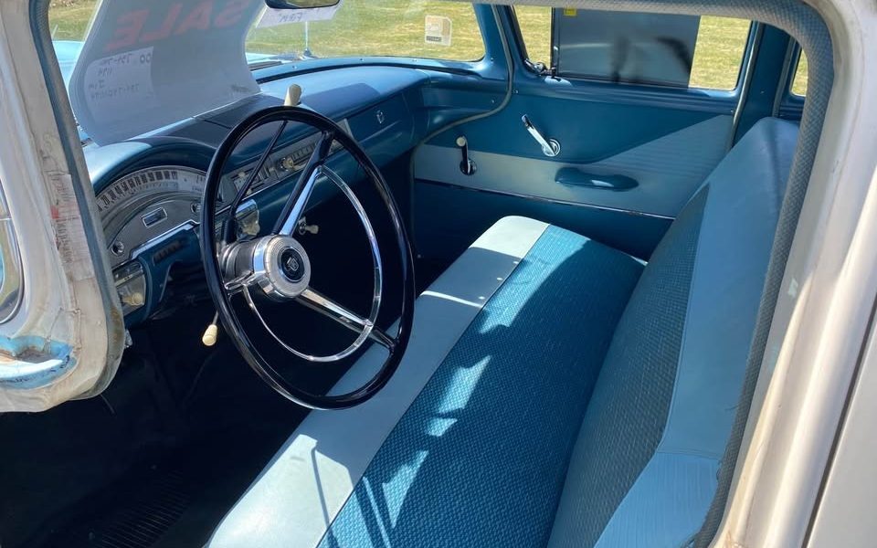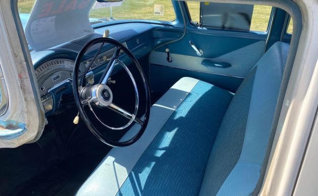 The seller advertises the Country Sedan as having “plenty of patina,” but he may be taking advantage of a trend for no reason; this looks like a pretty nice wagon. Sure, the chrome is dulled and I’m sure that the paint is not perfect, but I certainly wouldn’t apologize for it. The interior fabric looks original and completely intact. One thing that Ford fundamentally left alone at the 1958 changeover was the dashboard, one of my favorites of the 1950s; that curved speedometer and subdued ornamentation might have eschewed ’50s flash, but it’s held up well. Ford Division let the others outfin each other, and for the most part, their more conservative designs of the 1950s hold up pretty well today.