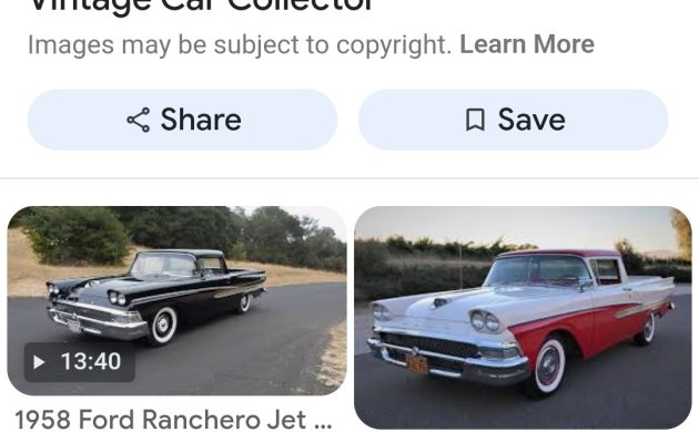 Here’s a picture of the 1958 Ford Ranchero. Click on the pic to see the rear