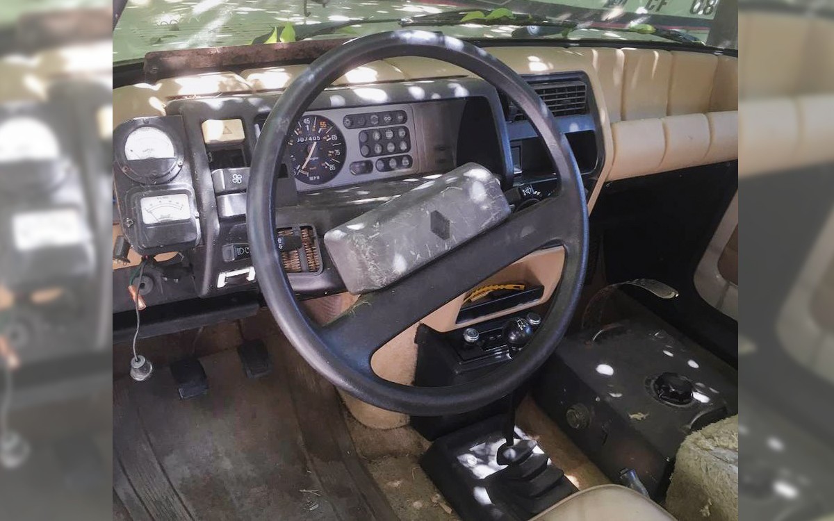 It may seem unusual to see a manual transmission in an electric car but a lot of the early conversions had them. Some didn’t use the clutch but apparently, the Lectric Leopards still used a single dry-plate clutch. Marketing literature of the period touts such things as four-way flashers! Whoa, fancy! Just kidding, it was still early technology in that era even though battery-powered vehicles have been around for close to a hundred years by that time in one form or another. Maybe longer. The interior looks a bit better than the exterior does but it’ll still need work.
