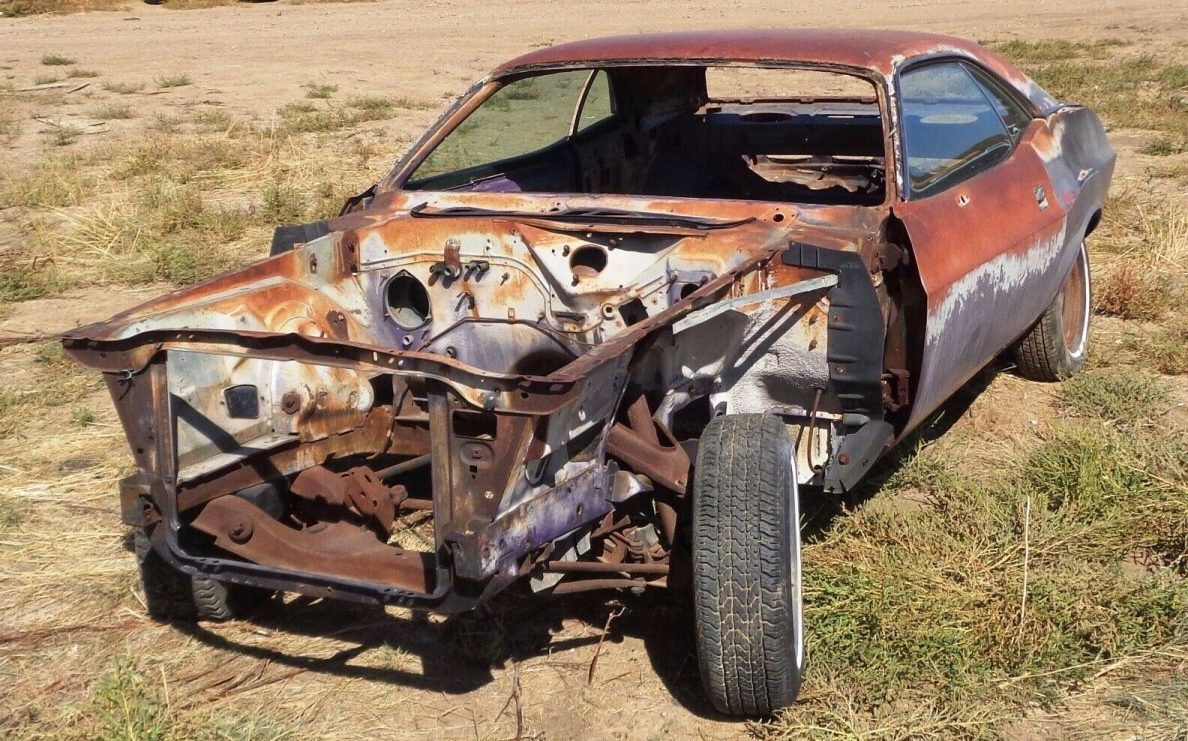 Air conditioning kept this E-body cool, and the factory AC air box remains. Black vinyl top, hood, and stripes contrasted the Plum Crazy paint. Other features included the light package, power steering, power driver’s seat, and rally gauges. As the pool of potential buyers who drooled over these cars in their youth ages out of the market, we’ve probably already seen the high tide for sinking tens of thousands of dollars into a classic muscle-car restoration, and that flood is receding year by year. On the other hand, pony cars like this R/T pull the heart-strings of younger buyers who enjoy today’s super-powerful and capable Challengers, so if you’re going “all in” on a gamble, this might be a good one. Or, as I mentioned earlier, someone with a front-damaged Challenger may challenge their skills by making two sidelined classics into one runner. Is restoring this original R/T worth the effort?