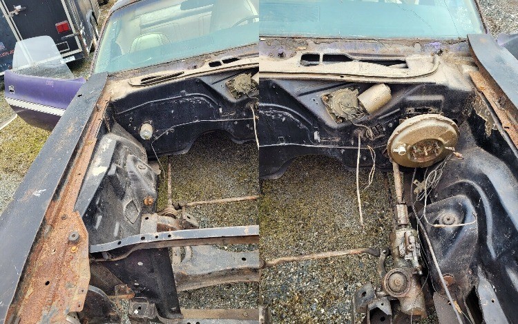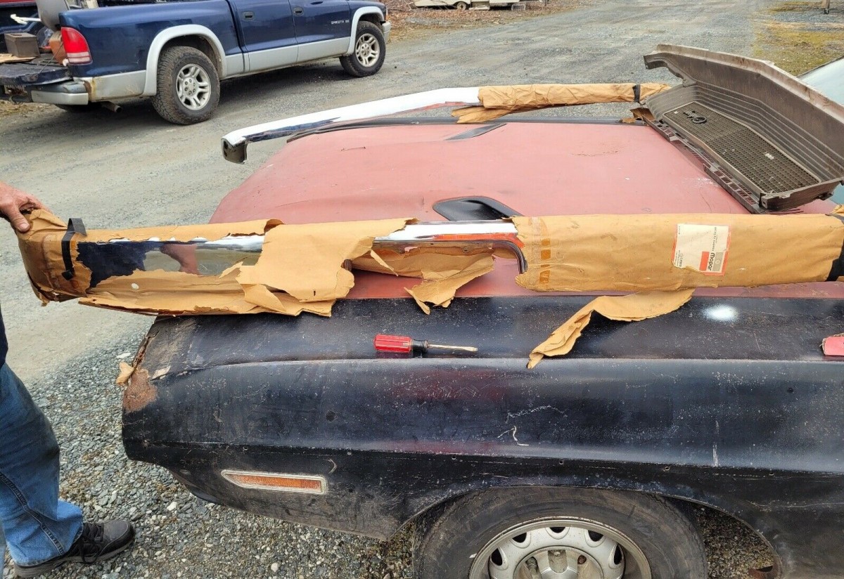 The best part of the interior may be the dashboard as there doesn’t appear to be any cracks and it sports the Challenger Rallye gauge package. Most of the photos provided are not of the car itself but all the loose parts that go with it, like the engine block that the seller says came out of it. But the TorqueFlite has flown the coop, although the car has a 3.23 Sure Grip shifter. New chrome bumpers will come with the car along with a bunch of trim pieces.