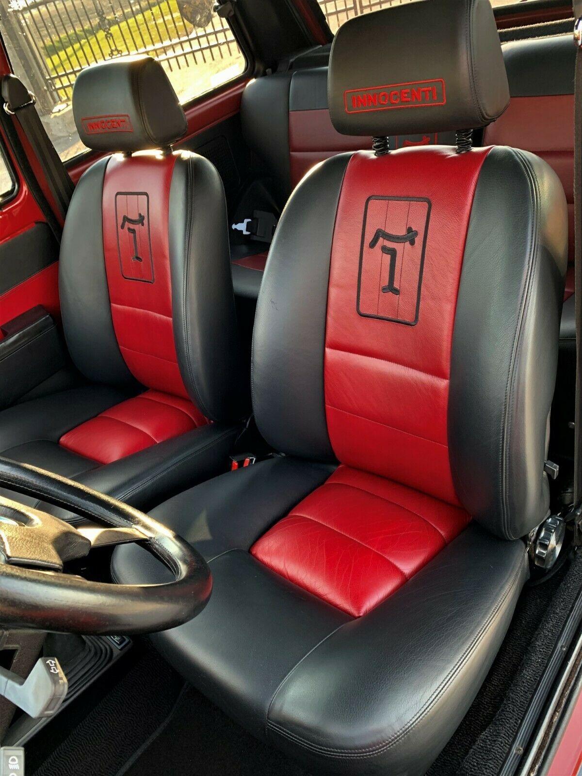 The Innocenti can trace its lineage all the way back to the original Mini, but it would be fair to say that Sir Alec Issigonis probably wouldn’t recognize much of his original creation in this car. Apart from the fact that it wears panels that completely transform the car’s appearance, it also features a rear hatch. This doesn’t make much difference to luggage space with the rear seat in the upright position, but I can think of more than a few owners of the original Mini who would have relished the prospect of not having to crouch down to unload the tiny trunk of their pride and joy. The overall presentation of the vehicle is essentially spotless, with no issues or problems to report. The paint shines superbly, the glass looks to be perfect, while the charcoal grey alloy wheels appear to be free from any form of damage or curb strike. The fender flairs, side skirts, hood scoop, and deeper front bumper with integrated chin spoiler, all combine to provide the Innocenti with a very flamboyant appearance that, when coupled with the red paint, is anything but subtle.