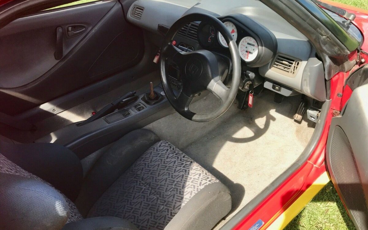 Inside looks decent. There might be some missing trim pieces like the shift knob, but other than that, you’re good to go. This specific Beat has a particularly sought-after color-matched hardtop built by prominent Honda tuner Mugen, giving better weather seals and slightly more headroom than the soft top. 63 horsepower doesn’t sound like a lot, but remember: this car only weighs 1,600 pounds and is scarcely bigger than the typical American coffee table. 63 horsepower is all you need, and in a convertible like this, you’re not going to be able to stop smiling.