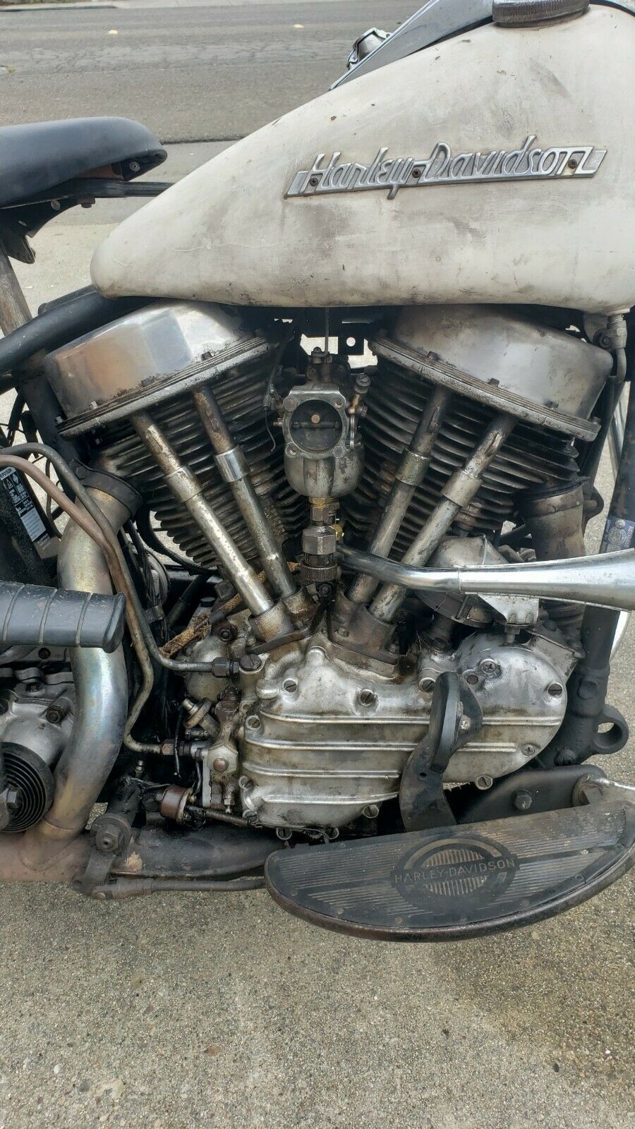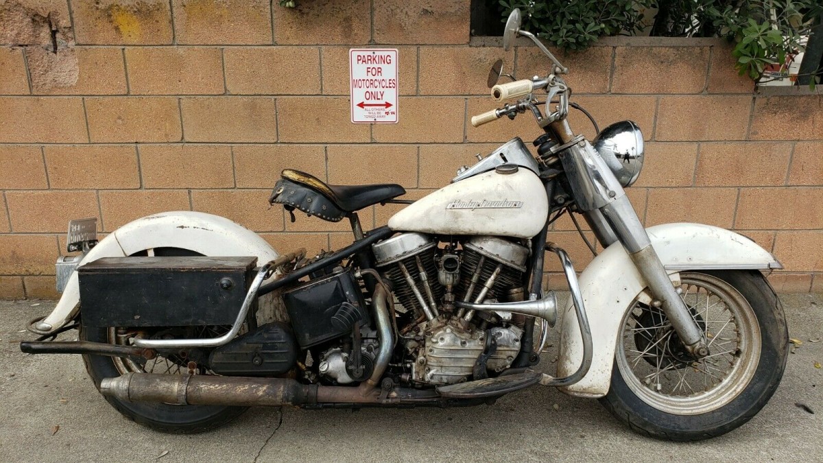 I have owned and ridden a 1955 FL since 1992. They really aren’t that hard to start. When they’re cold you just prime them a little bit by applying the choke, kick it through two full cycles with the ignition turned off, turn the ignition on and fire it up. The FL is a lower compression model than the FLH so the kick really isn’t too hard. To restore the bike shown here would be a crime in my opinion. It just needs a good hyper cleaning and left alone. They’re only original once.